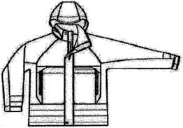 製式 | 中衣を設け、透湿防水層と遮熱層兼裏地とする。 前面にファスナー、マジックテープを付ける。左右胸部にファスナー、腰部左右裾部に雨蓋付きポケットを付ける。後面上部上段に銀色反射文字で北海道、下段に網走地区消防組合と2行で表示する。後面下部に銀色反射文字で○○F.D.と1行で表示する。 形状は、図のとおりとする。 | ||||
