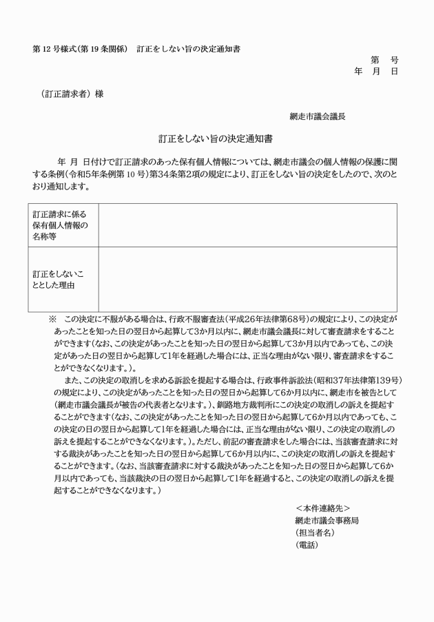 ○網走市議会の個人情報保護に関する条例施行規程
